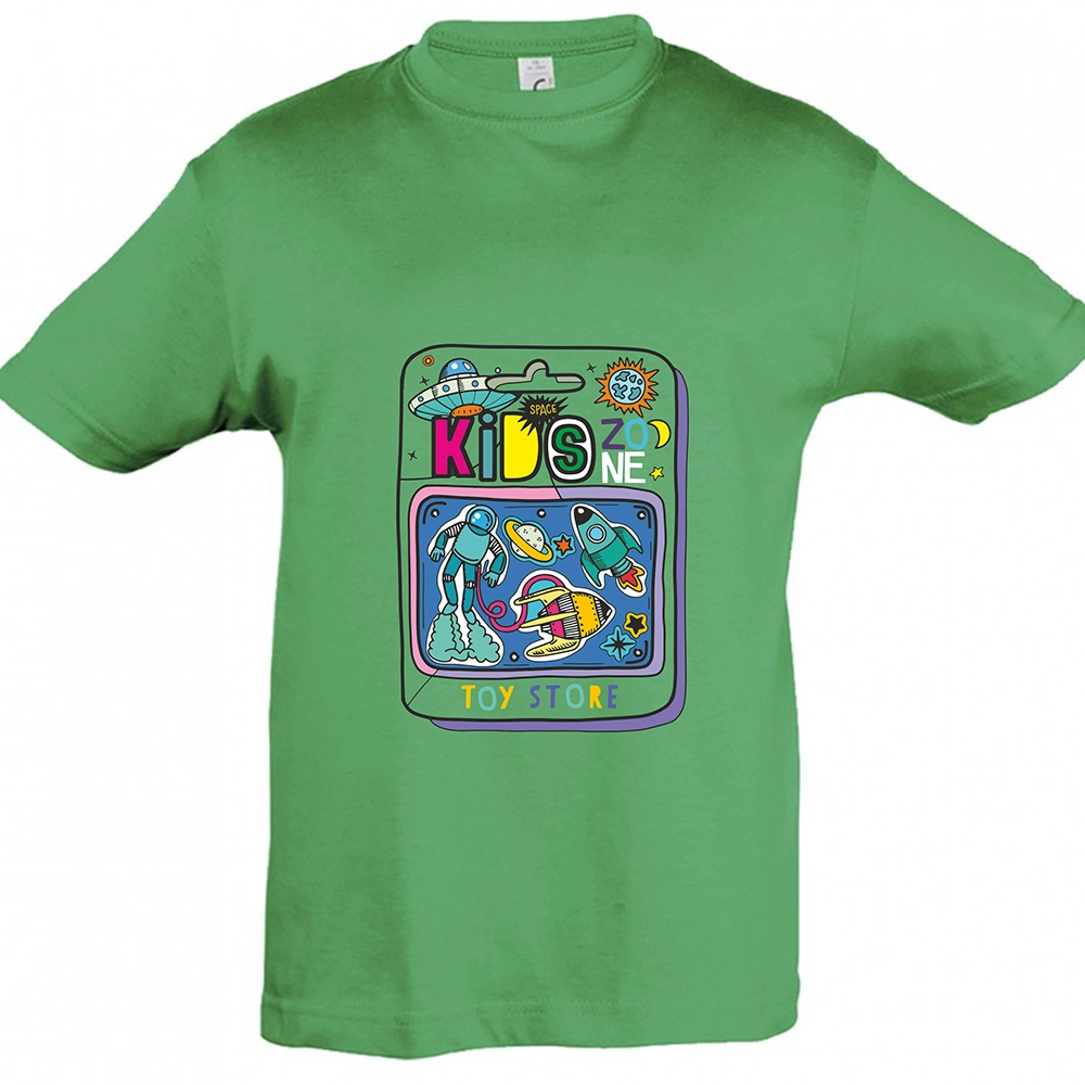Το μπροστινό print δίνει όλο το vibe ενός μικρού διαστημικού κόσμου, με έντονα χρώματα και χαρούμενα στοιχεία που μιλάνε κατευθείαν στη φαντασία των παιδιών. Η πίσω όψη συνεχίζει στο ίδιο playful mood με το rocket detail και το λεκτικό Kids Zone, κάνοντας το μπλουζάκι ακόμη πιο ξεχωριστό και ολοκληρωμένο. ![]()