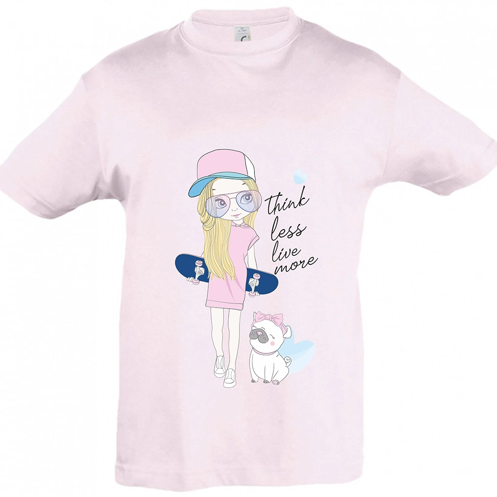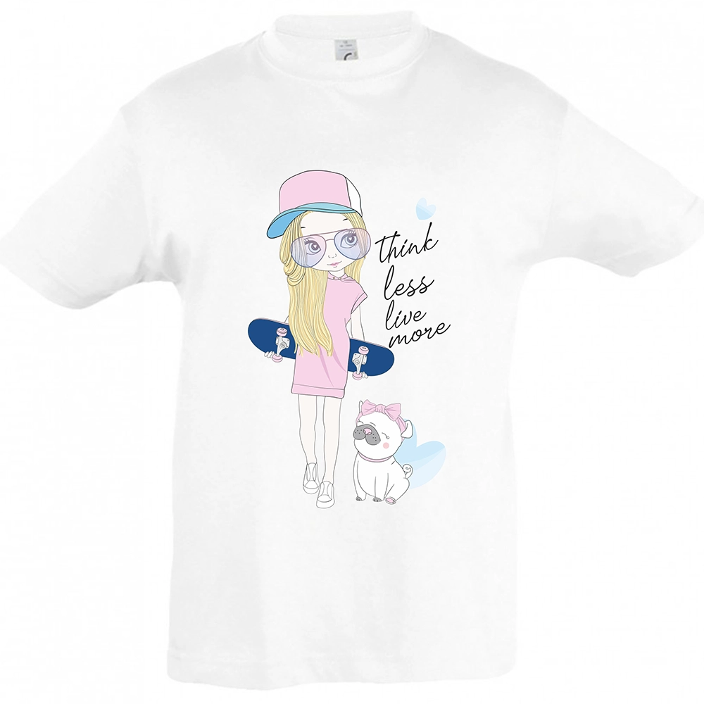 Το Think Less, Live More Kids Tee φέρνει ένα πιο χαλαρό, γλυκό και playful mood στην παιδική συλλογή της Wewee. Με το cute κοριτσάκι, το skate και το μικρό σκυλάκι στο πλάι, το σχέδιο αποπνέει ανεμελιά, κίνηση και αυτή τη carefree διάθεση που ταιριάζει τέλεια στην παιδική ηλικία.